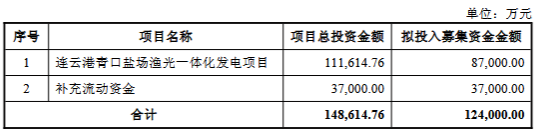 江苏新能(603693)(603693.SH)发布公告,公司拟向不特定对象发行可转换公司债券,募集资金总额 不超过12.4亿元(含),扣除发行费用后的募集资金净额将用于:连云港青口盐场渔光一体化发电项目、 补充流动资金。 ...