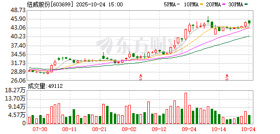 纽威股份(603699.SH)发布前三季度业绩,归母净利润11.14亿元,同比增长34.54%