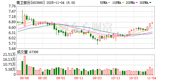 机构持仓方面,截止2025年6月30日,南卫股份十大流通股东中,华夏中证500指数增强A(007994)退 出十大流通股东之列。 10月29日,南卫股份(维权)盘中下跌2.14%,截至09:38,报6.41元/股,成交299.25万元,换手率 0.16%,总市值18.53亿元。 南卫股份今年以来股价涨47.36%,近5个交易日跌0.77%,近20日涨9.01%,近60日跌5.04%。 截至6月30日,南卫股份股东户数1.45万,较上期增加48.53%;人均流通股19986股,较上期减少 32.67%。2025年1月-6月,南卫股份实现营业收入3.06亿元,同比增长1.39%;归母净利润-1296.77万 元,同比减少1363.32%。 分红方面,南卫股份A股上市后累计派现7752.70万元。近三年,累计派现0.00元。 资料显示,江苏南方卫材医药股份有限公司位于江苏省武进经济开发区果香路1号,成立日期1990年7月 4日,上市日期2017年8月7日,公司主营业务涉及从事透皮产品、医用胶布胶带及绷带、运动保护产 品、急救包、护理产品等产品的研发、生产和销售。主营业务收入构成为:创可贴39.59%,防护用品 28 ...