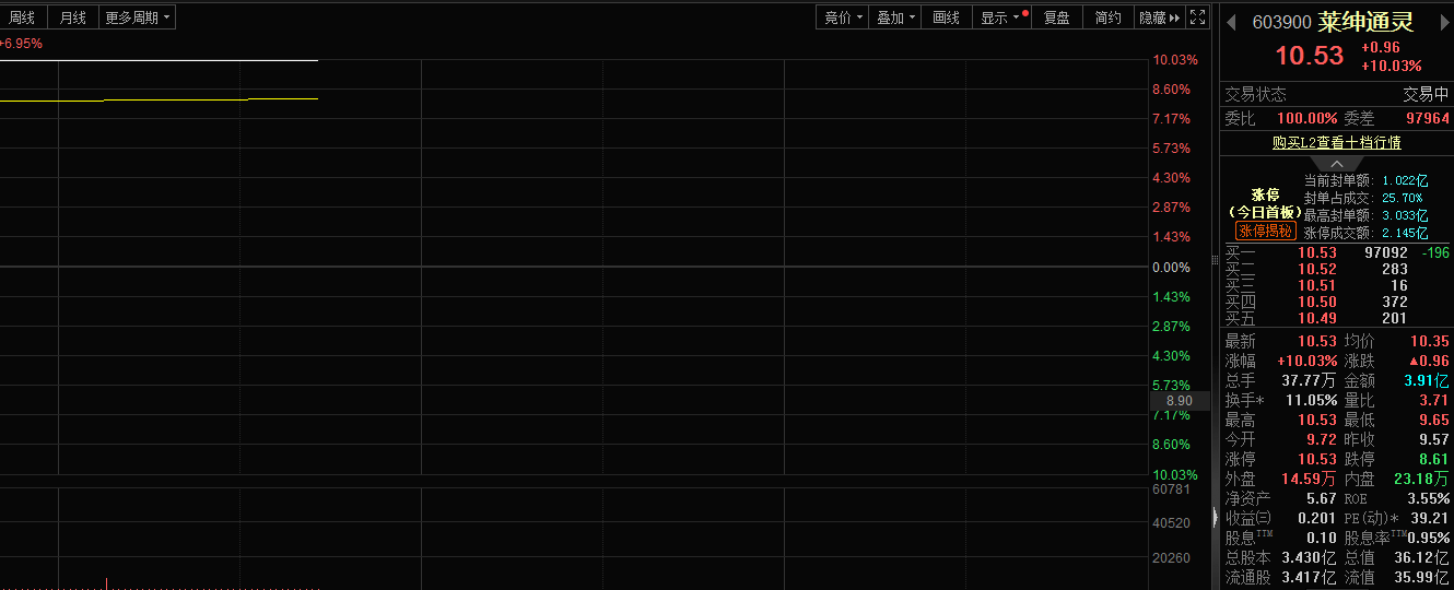 国际金价不断创下历史新高,莱绅通灵股价涨停