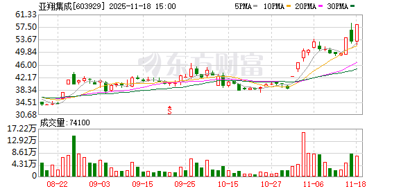 亚翔集成主营业务为IC半导体等高科技电子产业的建厂工程提供洁净室工程、工艺二次配工程及建筑工 程等服务,包括洁净厂房建造规划、设计建议、设备配置、洁净室环境系统集成、生产机台二次配管工 程及维护服务等。 2025年前三季度,亚翔集成共实现营业收入约为31.09亿元,同比下降29.63%;实现归属于上市公司股 东的净利润约为4.42亿元,同比增长0.78%;经营活动产生的现金流量净额约为10.7亿元,同比下降 20.29%。 Wind数据显示,截至11月18日收盘,公司股价报58.18元/股,收盘涨幅为10%,股价实现"三天两板"。 (文章来源:中国证券报·中证金牛座) 亚翔集成11月18日晚间公告,公司股票于2025年11月14日、11月17日、11月18日连续三个交易日内日收 盘价格涨幅偏离值累计超过20%,根据《上海证券交易所交易规则》的有关规定,属于股票交易异常波 动情形。 公司在公告中提到,存在股东减持风险。公司于2025年9月2日披露了股东EVER CREATIVEINVESTMENTS LTD.(以下简称"EVER CREATIVE")减持股份计划公告。减持期间为2025 年9月23日至2025年 ...