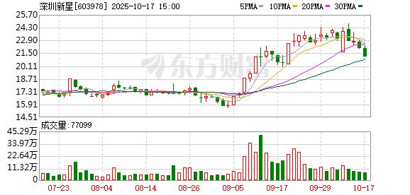 Company Overview - Shenzhen New Star Light Alloy Materials Co., Ltd. is located in Bao'an District, Shenzhen, Guangdong Province, and was established on July 23, 1992. The company was listed on August 7, 2017. Its main business involves the research, production, and sales of aluminum grain refiners [1][2].   Financial Performance - For the first half of 2025, Shenzhen New Star achieved operating revenue of 1.499 billion yuan, representing a year-on-year growth of 28.91%. The net profit attributable to the parent company was -22.36 million yuan, showing a year-on-year increase of 61.00% [2]. - Since its A-share listing, the company has distributed a total of 42 million yuan in dividends, with no dividends paid in the last three years [3].   Stock Performance - As of October 29, Shenzhen New Star's stock price decreased by 2.07%, trading at 24.66 yuan per share, with a total market capitalization of 5.206 billion yuan. The stock has increased by 60.03% year-to-date, with a 12.09% rise over the last five trading days [1]. - The company has seen a net outflow of main funds amounting to 13.66 million yuan, with significant buying and selling activity in large orders [1].   Shareholder Information - As of September 30, the number of shareholders for Shenzhen New Star was 16,500, an increase of 3.62% from the previous period. The average circulating shares per person decreased by 3.49% to 12,830 shares [2].   Business Segments - The main revenue components for Shenzhen New Star include aluminum foil raw materials (53.96%), aluminum grain refiners (33.53%), lithium hexafluorophosphate (4.19%), and other products (7.92%) [1].