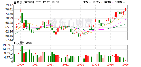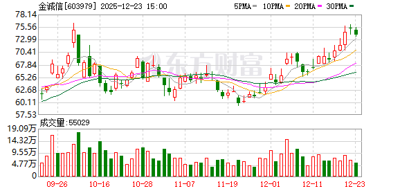 金诚信股价涨5.05%,东证资管旗下1只基金重仓,持有2.05万股浮盈赚取7.77万元