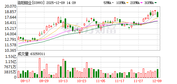 此次新规的核心争议点集中在出口特许权使用费的核算细节上。一位匿名矿业高管向媒体透露,行业普 遍困惑于预缴的10%特许权使用费计算基准——企业迫切希望明确,该费用是否会扣除2月出口禁令实 施前最后一次出口的交易金额,这直接关系到企业的资金占用成本。据了解,刚果(金)自10月16日起实 施钴出口配额制时,便要求企业在发运前预缴10%销售价值的特许权使用费,此次最新规定未对核算基 准作出明确说明,加剧了企业的观望情绪。 消息面上,据矿权资源网报道,12月8日市场消息,全球最大钴供应国刚果(金)出台的最新钴出口规 定,正引发全球矿业及锂电产业链的广泛担忧。该国自10月以配额制替代出口禁令后,新增的临时特许 权使用费要求及复杂流程,让本就紧绷的钴供应链再添不确定性,而此前钴价已从年初低谷实现翻倍上 涨。 洛阳钼业(603993)(03993)午后跌超7%,截至发稿,跌6.74%,报17.86港元,成交额10.37亿港元。 ...
