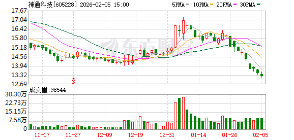 | 证券代码:605228 | 证券简称:神通科技 | 公告编号:2026-016 | | --- | --- | --- | | 债券代码:111016 | 债券简称:神通转债 | | 神通科技集团股份有限公司 关于实施"神通转债"赎回暨摘牌的第五次提示性公 告 本公司董事会及全体董事保证本公告内容不存在任何虚假记载、误导性陈述 或者重大遗漏,并对其内容的真实性、准确性和完整性承担法律责任。 重要内容提示: 截至 2026 年 2 月 5 日收市后,距离 2 月 9 日("神通转债"最后交易日)仅 剩 2 个交易日,2 月 9 日为"神通转债"最后一个交易日。 最后转股日:2026 年 2 月 12 日 截至 2026 年 2 月 5 日收市后,距离 2 月 12 日("神通转债"最后转股日) 仅剩 5 个交易日,2 月 12 日为"神通转债"最后一个转股日。 本次提前赎回完成后,"神通转债"将自 2026 年 2 月 13 日起在上海证券 交易所摘牌。 投资者所持"神通转债"除在规定时限内通过二级市场继续交易或按照 11.48 元/股的转股价格进行转股外,仅能选择以 100 元/张的票面价格加当期应计 利 ...