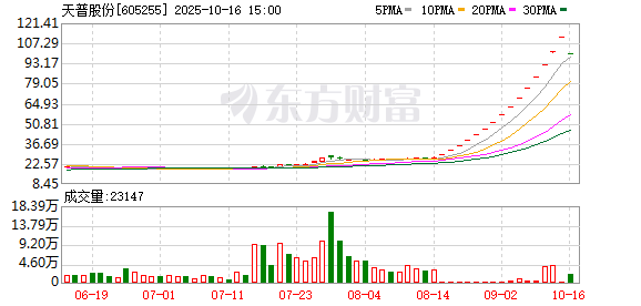 Core Points - Tianpu Co., Ltd. (605255) resumed trading and hit the daily limit down [1] - The stock price of Tianpu Co., Ltd. experienced a continuous rise for 15 trading days from August 22 to September 23, with a total increase of 317.72% [1]