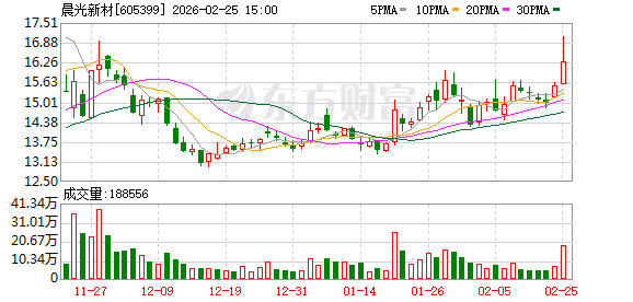 声明:市场有风险,投资需谨慎。本文为AI大模型基于第三方数据库自动发布,任何在本文出现的信 息(包括但不限于个股、评论、预测、图表、指标、理论、任何形式的表述等)均只作为参考,不构成 个人投资建议。受限于第三方数据库质量等问题,我们无法对数据的真实性及完整性进行分辨或核验, 因此本文内容可能出现不准确、不完整、误导性的内容或信息,具体以公司公告为准。如有疑问,请联 系biz@staff.sina.com.cn。 责任编辑:小浪快报 2026年2月25日,晨光新材(sh605399)触及涨停,涨停价17.06元,涨幅6.77%,总市值51.70亿元,流 通市值51.59亿元,截止发稿,总成交额1.92亿元。 根据喜娜AI异动分析,晨光新材涨停原因可能如下,公司治理优良+业绩压力释放+功能性硅烷概念: 1、晨光新材严格执行股权激励、员工持股等制度,体现良好公司治理。公司详细披露财务与经营数 据,信息透明度高。公司回购注销离职人员股份,规模小却有助于每股指标提升,这对股价起到一定支 撑作用。 2、2025年公司计提大额资产减值3304.58万元,虽影响当期利润,但有利于后续业绩轻装上 阵。2025年前三季度公司获得 ...