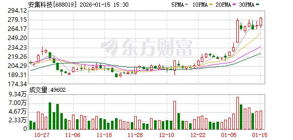 Core Viewpoint - Anji Technology has shown significant stock performance with a year-to-date increase of 26.45% and a recent surge in trading volume, indicating strong investor interest and market activity [1][2]. Financial Performance - For the period from January to September 2025, Anji Technology reported a revenue of 1.812 billion yuan, representing a year-on-year growth of 38.09%. The net profit attributable to shareholders was 608 million yuan, reflecting a 54.96% increase compared to the previous year [2]. - Cumulative cash dividends since the company's A-share listing amount to 178 million yuan, with 125 million yuan distributed over the last three years [3]. Shareholder Structure - As of September 30, 2025, the number of shareholders for Anji Technology reached 16,800, an increase of 48.24% from the previous period. The average number of circulating shares per shareholder decreased by 32.30% to 10,037 shares [2]. - The second-largest circulating shareholder is Hong Kong Central Clearing Limited, holding 18.796 million shares, an increase of 6.0729 million shares from the previous period. Other notable shareholders include the Jiashi Shanghai Stock Exchange Science and Technology Innovation Board Chip ETF and Invesco Great Wall Electronic Information Industry Fund [3]. Stock Performance and Market Activity - On January 15, Anji Technology's stock price rose by 2.06%, reaching 275.55 yuan per share, with a trading volume of 443 million yuan and a turnover rate of 0.97%. The total market capitalization stands at 46.447 billion yuan [1]. - The stock has experienced a 4.51% increase over the last five trading days, a 37.78% increase over the last 20 days, and a 29.55% increase over the last 60 days [1]. Business Overview - Anji Technology, established on February 7, 2006, and listed on July 22, 2019, specializes in the research and industrialization of key semiconductor materials. The main revenue sources include chemical mechanical polishing liquids (81.48%) and functional wet electronic chemicals (18.14%) [1]. - The company operates within the electronic chemicals sector and is associated with various concepts, including photoresists, advanced packaging, and integrated circuits [1].
