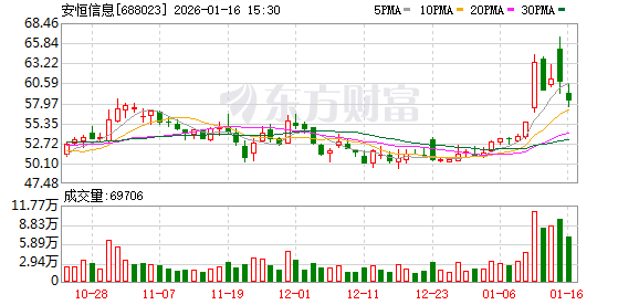 截至9月30日,安恒信息股东户数1.25万,较上期减少8.09%;人均流通股8184股,较上期增加8.80%。 2025年1月-9月,安恒信息实现营业收入12.05亿元,同比增长5.24%;归母净利润-2.06亿元,同比增长 38.63%。 1月20日,安恒信息盘中下跌2.03%,截至13:02,报55.14元/股,成交1.33亿元,换手率2.32%,总市值 56.28亿元。 资金流向方面,主力资金净流出385.45万元,特大单买入540.93万元,占比4.08%,卖出554.00万元,占 比4.18%;大单买入3027.07万元,占比22.82%,卖出3399.46万元,占比25.63%。 安恒信息今年以来股价涨7.26%,近5个交易日跌7.48%,近20日涨7.63%,近60日涨3.65%。 资料显示,杭州安恒信息技术股份有限公司位于浙江省杭州市滨江区西兴街道联慧街188号,成立日期 2007年5月15日,上市日期2019年11月5日,公司主营业务涉及网络信息安全产品的研发、生产及销售, 并为客户提供专业的网络信息安全服务。主营业务收入构成为:网络信息安全服务36.78%,网络信息 安全平台36.67%, ...