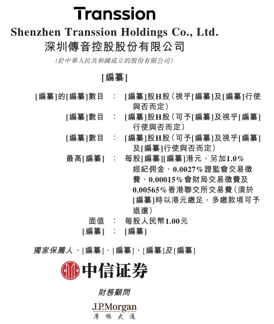 传音控股(68036.SH):向香港联交所递交H股发行上市申请并刊发申请资料