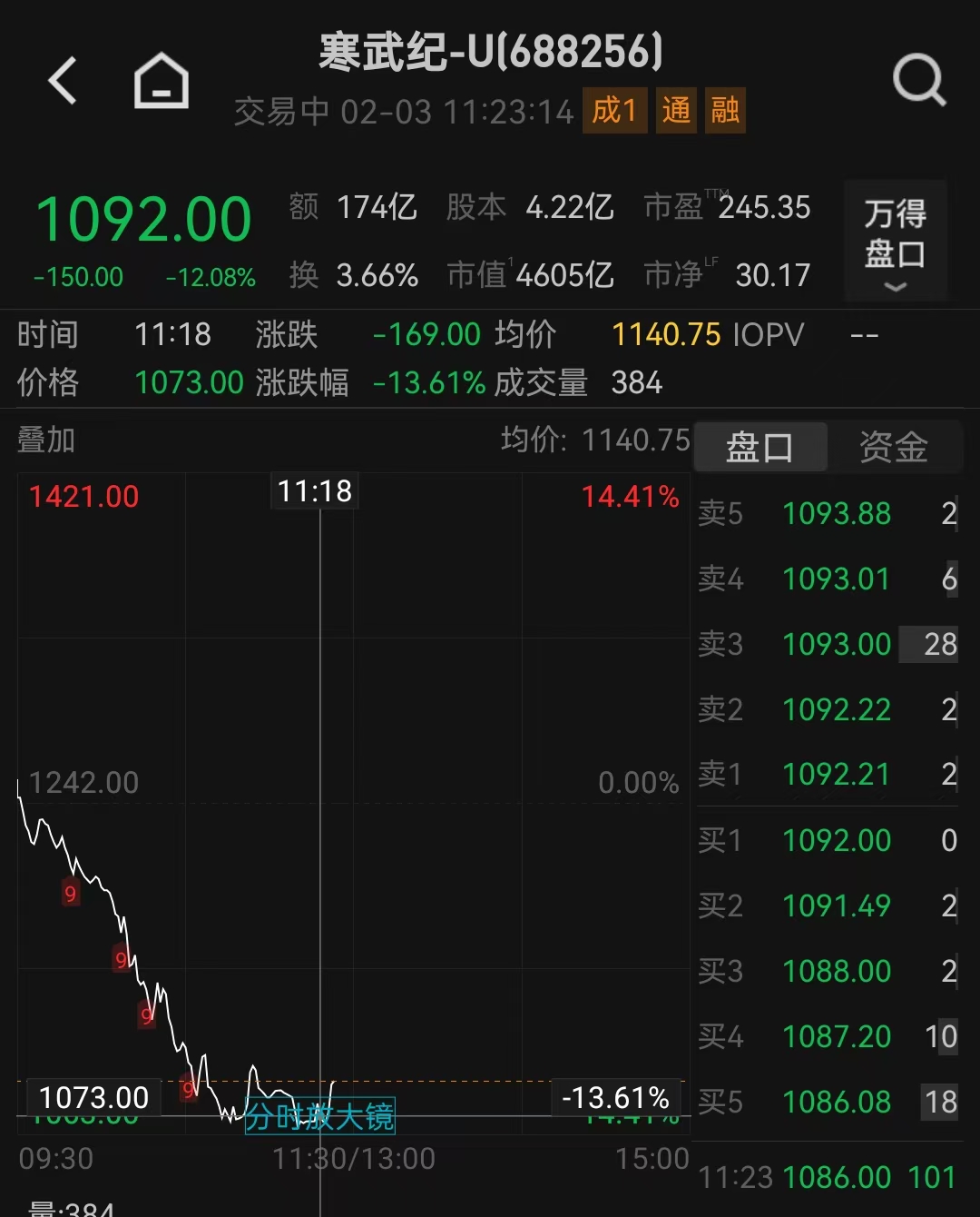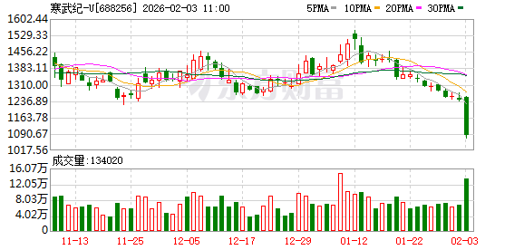 2月3日早盘盘中,国产AI芯片公司寒武纪股价跌超13%,市值回落到4600亿元以下。其他AI芯片公司 中,摩尔线程跌超5%,海光信息跌超3%,沐曦股份跌6%。 (文章来源:第一财经) 寒武纪-U[688256] 2026-02-03 11:00 5PMA = 10PMA = 20PMA = 30PMA = 1602.44 1529.33 1456.22 1383.11 1310.00 1236.89 1163.78 1090.67 1017.56 16.07万,或交里:134020 12.05万 8.03万 4.02万 0 摩尔线程-V[688795] 2026-02-03 11:01 5PMA = 10PMA = 20PMA = 30PMA = 985.31 923.64 861.98 800.31 738.64 676.97 615.30 553.64 491.97 27.05万_成交里 : 19489 20.29万 13.53万 6.76万 0 02-03 海光信息[688041] 2026-02-03 11:00 5PMA = 10PMA = 20PMA = 30PMA = 320.74 303.63 ...