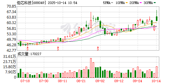 Group 1 - The stock price of Juchip Technology reached a historical high, increasing by 15.44% to 67.74 yuan, with a trading volume of 7.1713 million shares and a transaction amount of 475 million yuan, resulting in a turnover rate of 4.09% [2] - The latest total market capitalization of Juchip Technology in A-shares is 11.866 billion yuan, with the same amount for the circulating market capitalization [2] - The electronic industry, to which Juchip Technology belongs, has an overall increase of 1.23%, with 390 stocks rising and 90 stocks declining, including notable declines from Wentai Technology and Boliang Optoelectronics [2] Group 2 - The latest margin trading data shows that as of October 13, the margin balance for Juchip Technology is 517 million yuan, with a recent increase of 67.068 million yuan, representing a 14.89% growth [2] - The company reported a revenue of 449 million yuan for the first half of the year, reflecting a year-on-year growth of 60.12%, and a net profit of 91.3754 million yuan, which is a 123.19% increase year-on-year, with basic earnings per share of 0.5300 yuan [2] - On October 14, the company released a performance forecast for the first three quarters, expecting a net profit of 151 million yuan, which indicates a year-on-year growth of 112.94% [3]