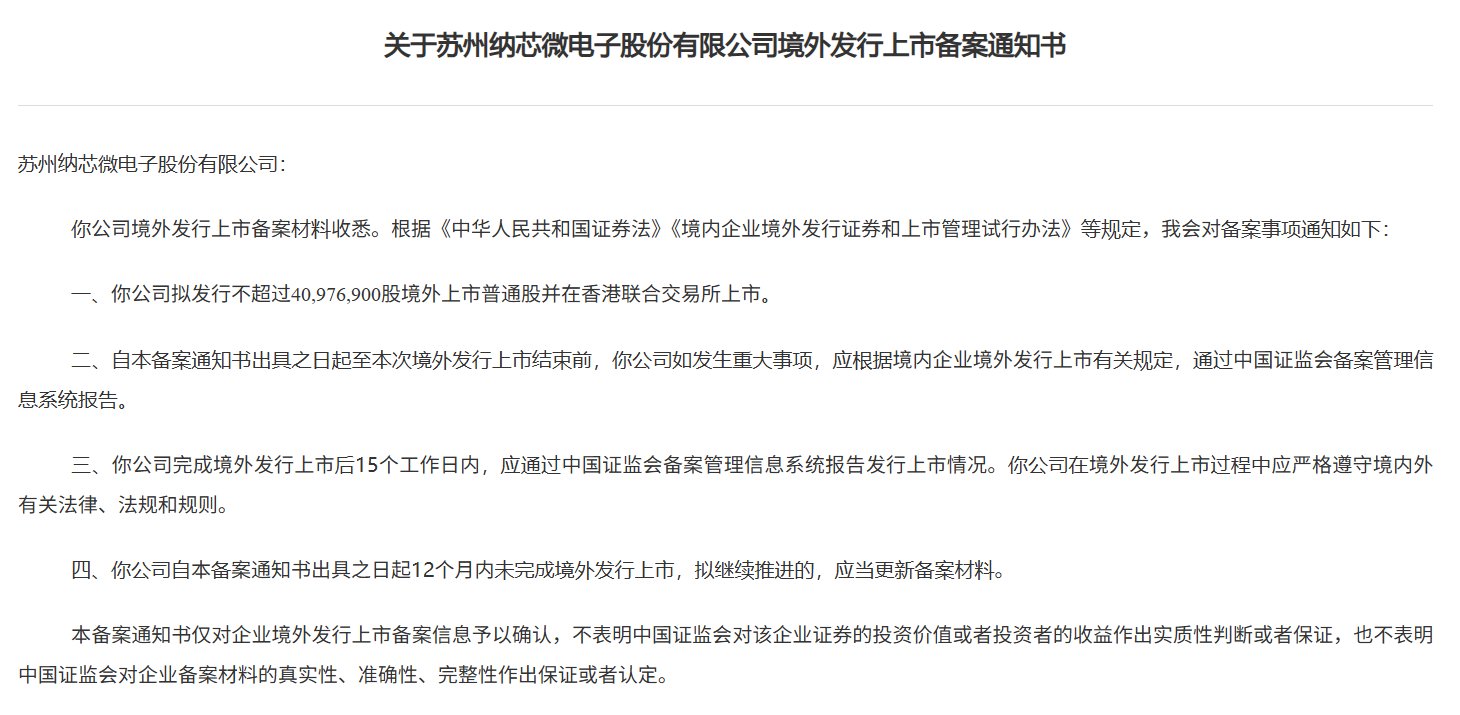 纳芯微港股IPO获中国证监会备案