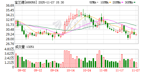 Core Viewpoint - The controlling shareholder of Baolande (688058.SH), Yi Cundao, plans to transfer 5,830,000 shares at a price of 26.56 yuan per share to Tianyang Technology, which represents 7.50% of the company's total share capital [1][2]. Share Transfer Details - The total amount for the share transfer is calculated to be 155 million yuan [2]. - After the transfer, Yi Cundao will hold 21,602,681 shares, accounting for 27.79% of the total share capital, while Tianyang Technology will hold 5,830,000 shares, representing 7.50% [2]. Impact on Company Control - The share transfer will not result in a change of control for the company, nor will it affect the governance structure or ongoing operations significantly [2]. Company Financial Performance - In 2024, the company reported revenue of 283 million yuan, a year-on-year decrease of 7.18%, and a net loss attributable to shareholders of 58.72 million yuan, compared to a profit of 14.52 million yuan in the previous year [4]. - For the first three quarters of 2025, the company achieved revenue of 138 million yuan, down 31.83% year-on-year, with a net loss of 92.60 million yuan [4]. Historical Context - Baolande was listed on the Sci-Tech Innovation Board on November 1, 2019, with an initial public offering price of 79.30 yuan per share [2]. - The company has experienced a decline in stock price, currently trading below its IPO price [2].