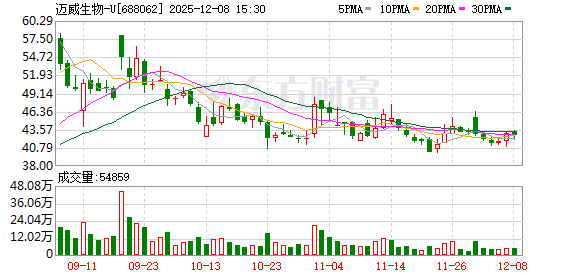 2024年1至12月份,迈威生物的营业收入构成为:医药制造行业占比99.92%,其他业务占比0.08%。 每经AI快讯,迈威生物(SH 688062,收盘价:39.45元)12月23日晚间发布公告称,2025年12月23日, 公司完成回购,已实际回购公司股份约119万股,占公司总股本的比例为0.3%,回购最高价格为58.02 元/股,回购最低价格为37.48元/股,回购均价为41.93元/股,支付的资金总额为人民币4999.45万元。 每经头条(nbdtoutiao)——地产"优等生"受困20亿元到期债务,首次债务展期仍在博弈,明年还有超 百亿元公开债到期 (记者 王晓波) 截至发稿,迈威生物市值为158亿元。 ...