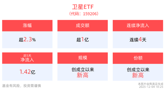 商业航天持续发酵,卫星ETF(159206)涨超2%,昨日净流入超9500万元!