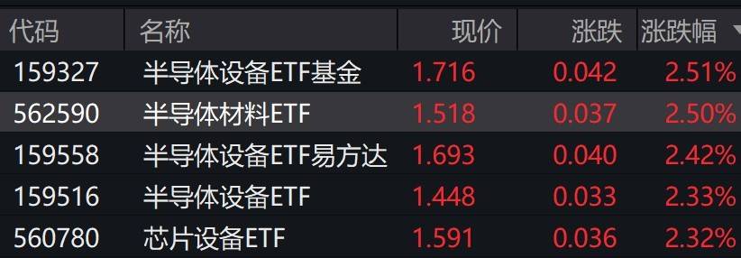 半导体设备材料概念股走强,相关ETF涨超2%