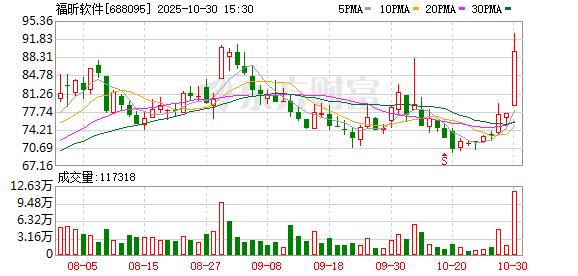 资金面上,福昕软件上一交易日主力资金净流出452.11万元,近5日净流入217.18万元。 融资融券数据显示,该股最新(10月29日)两融余额为3.33亿元,其中,融资余额为3.32亿元,较上一 个交易日减少855.57万元,降幅为2.51%;融券余额为14.70万元,较上一个交易日增加494.00元,增幅 为0.34%。近10日两融余额合计增加23.68万元,增幅为0.07%,其间融资余额增长0.07%,融券余额增长 13.17%。 (原标题:【盘中播报】福昕软件盘中涨停) 10月30日盘中科创板股福昕软件涨停,截至10:09,股价报92.83元,成交6.60亿元,换手率8.27%,振幅 18.32%。 科创板个股中,截至发稿上涨的有209只,下跌的有370只,上市5日内的C奕材-U、C禾元-U、C必贝特- U等,涨幅较高的有C奕材-U、C禾元-U、C必贝特-U,涨幅为5.64%、4.68%、1.66%,其余科创板个股 中,涨停的有纬德信息、福昕软件等,跌幅居前的有敏芯股份、南亚新材、和林微纳等,分别下跌 8.96%、7.77%、7.72%。 10月30日公司发布的三季报数据显示,前三季公司共实现营业收入6 ...