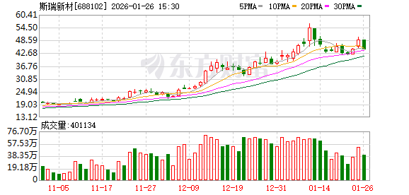 斯瑞新材1月22日获融资买入1.68亿元,融资余额9.40亿元