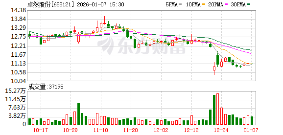 | 交易日期 证券简称 | | 壬射代码 - | 成交价(元) 成交金额(万元) 成交量( *) 买入营业部 | | 卖出营业部 | 是否为专场 | | --- | --- | --- | --- | --- | --- | --- | | 026-01-06 | 卓然殿母 | 688121 | 744.1 70 10.63 | 學業和氢基督學会副 | 丟書籍參受貿嘉豐 | ка | 1月6日,卓然股份大宗交易成交70万股,成交额744.1万元,占当日总成交额的13.36%,成交价10.63 元,较市场收盘价11.13元折价4.49%。 ...