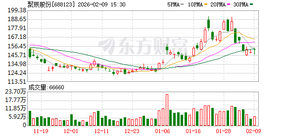 截至9月30日,聚辰股份股东户数1.76万,较上期增加48.55%;人均流通股8981股,较上期减少 32.62%。2025年1月-9月,聚辰股份实现营业收入9.33亿元,同比增长21.29%;归母净利润3.20亿元,同 比增长51.33%。 分红方面,聚辰股份A股上市后累计派现2.99亿元。近三年,累计派现1.86亿元。 2月2日,聚辰股份跌13.93%,成交额22.07亿元。两融数据显示,当日聚辰股份获融资买入额3.24亿 元,融资偿还2.52亿元,融资净买入7130.56万元。截至2月2日,聚辰股份融资融券余额合计13.22亿 元。 融资方面,聚辰股份当日融资买入3.24亿元。当前融资余额13.17亿元,占流通市值的5.19%,融资余额 超过近一年90%分位水平,处于高位。 融券方面,聚辰股份2月2日融券偿还3400.00股,融券卖出2400.00股,按当日收盘价计算,卖出金额 38.47万元;融券余量2.96万股,融券余额474.04万元,超过近一年90%分位水平,处于高位。 资料显示,聚辰半导体股份有限公司位于上海市浦东新区张东路1761号10幢,香港湾仔皇后大道东183号 合和中心46楼,成立日期 ...