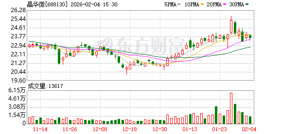 1月26日,晶华微(维权)跌1.47%,成交额3526.93万元。两融数据显示,当日晶华微获融资买入额 274.04万元,融资偿还207.94万元,融资净买入66.10万元。截至1月26日,晶华微融资融券余额合计 3866.41万元。 分红方面,晶华微A股上市后累计派现998.40万元。 机构持仓方面,截止2025年9月30日,晶华微十大流通股东中,华商上证科创板综合指数增强A (023897)退出十大流通股东之列。 责任编辑:小浪快报 融券方面,晶华微1月26日融券偿还0.00股,融券卖出0.00股,按当日收盘价计算,卖出金额0.00元;融 券余量0.00股,融券余额0.00元,超过近一年90%分位水平,处于高位。 资料显示,杭州晶华微电子股份有限公司位于浙江省杭州市滨江区长河街道长河路351号4号楼5层A座 501室,成立日期2005年2月24日,上市日期2022年7月29日,公司主营业务涉及高性能模拟及数模混合 集成电路的研发与销售,主要产品包括医疗健康SoC芯片、工业控制及仪表芯片、智能感知SoC芯片等。 主营业务收入构成为:工业控制及仪表芯片41.56%,医疗健康SoC芯片34.45%,智能感知So ...