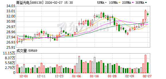 南财智讯2月27日电,清溢光电发布2025年度业绩快报,报告期内公司实现营业收入12.40亿元,同比增 长11.46%;归属于上市公司股东的净利润1.87亿元,同比增长8.80%;基本每股收益0.63元,同比下降 3.08%。 ...