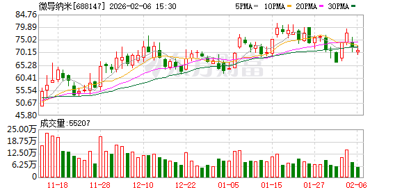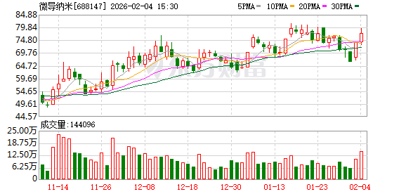2月4日,微导纳米涨5.02%,截至发稿,报77.61元/股,成交7.66亿元,换手率2.20%,总市值357.90亿 元。 资料显示,江苏微导纳米科技股份有限公司位于江苏省无锡市新吴区长江南路27号,成立日期2015年12 月25日,上市日期2022年12月23日,公司主营业务涉及以ALD技术为核心,致力于先进微、纳米级薄膜 沉积技术和设备的研究与产业化应用,为光伏、集成电路、柔性电子等半导体与泛半导体行业提供高端 装备与技术解决方案。主营业务收入构成为:光伏设备76.54%,半导体设备18.43%,配套产品及服务 3.07%,其他1.89%,其他(补充)0.07%。 从微导纳米十大流通股东角度 数据显示,中航基金旗下1只基金位居微导纳米十大流通股东。中航新起航灵活配置混合A(005537) 三季度新进十大流通股东,持有股数224.7万股,占流通股的比例为2.22%。根据测算,今日浮盈赚取约 833.65万元。 中航新起航灵活配置混合A(005537)成立日期2018年4月23日,最新规模8238.95万。今年以来收益 15.94%,同类排名342/8873;近一年收益96.99%,同类排名211/8119 ...