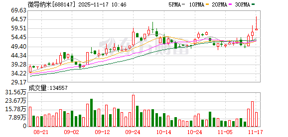 微导纳米涨9.48%,报63.04元/股,股价再创新高,总市值突破290.71亿元,成交额达3.21亿元。(AI生 成) ...