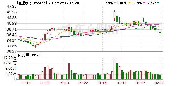 唯捷创芯跌2.95% 2022年上市募资26.7亿元