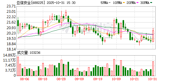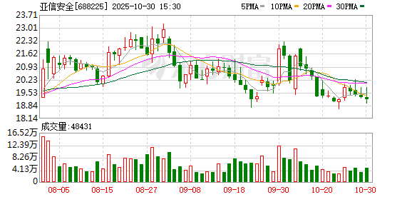 | 交易日期 | 证券简称 | 证券代码 | 成交价(元) 成交金额(万元) 成交量( *) 买入营业部 | | 类出营业部 | 是否为专场 | | | --- | --- | --- | --- | --- | --- | --- | --- | | 2025-10-30 | 亚信安全 | 688225 15,81 | 303,38 19.19 | 公司用品质量量 劳管业部 | ីទីមួយនិងដុច | | 客 | | 2025-10-30 | 亚信安全 | 688225 15.81 | 200.79 12.7 | 灵石摄霸劈发有限 | 交易度發展開發區 | | Ka | 10月30日,亚信安全大宗交易成交31.89万股,成交额504.17万元,占当日总成交额的5.1%,成交价 15.81元,较市场收盘价19.16元折价17.48%。 ...
