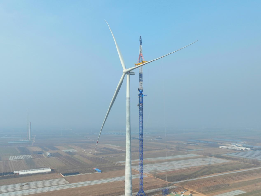 国家电投河北公司深州50兆瓦风力发电项目完成首台风机吊装