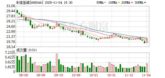 11月24日,永信至诚大宗交易成交42.99万股,成交额873.56万元,占当日总成交额的12.15%,成交价 20.32元,较市场收盘价20.63元折价1.5%。 | DC 315 GIO 310 THE VEST 交易日期 | 证券简称 | 证券代码 | 成交价(元) 成交金额(万元) 成交量(*) 买入营业部 | | 卖出营业部 | 是否为专场 | | | --- | --- | --- | --- | --- | --- | --- | --- | | 025-11-24 | 永信至诚 | 688244 | 42.99 20.32 873.56 | 委會員餐會會會 | 憑幫是蒙劈毀為嗎 | | Ka | ...