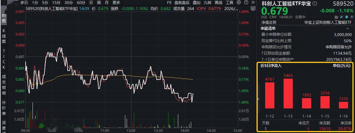 ETF盘中资讯|寒武纪登顶中国AI企业50强!科创人工智能ETF华宝(589520)近5日狂揽1.5亿元!机构:或迎1-10加速放量阶段
