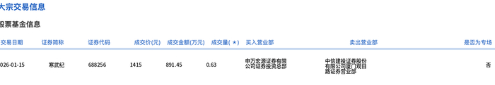 寒武纪-U1月15日大宗交易成交891.45万元