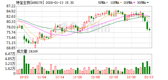 1月13日,特宝生物跌0.49%,截至发稿,报76.58元/股,成交1.86亿元,换手率0.59%,总市值312.59亿 元。特宝生物股价已经连续4天下跌,区间累计跌幅9.16%。 成曦累计任职时间9年254天,现任基金资产总规模2501.21亿元,任职期间最佳基金回报131.04%, 任 职期间最差基金回报-67.89%。 风险提示:市场有风险,投资需谨慎。本文为AI大模型自动发布,任何在本文出现的信息(包括但不 限于个股、评论、预测、图表、指标、理论、任何形式的表述等)均只作为参考,不构成个人投资建 议。 责任编辑:小浪快报 易方达上证科创板50ETF(588080)成立日期2020年9月28日,最新规模767.61亿。今年以来收益 12.47%,同类排名587/5517;近一年收益59.83%,同类排名1063/4203;成立以来收益9.04%。 易方达上证科创板50ETF(588080)基金经理为林伟斌、成曦。 截至发稿,林伟斌累计任职时间12年317天,现任基金资产总规模1226.92亿元,任职期间最佳基金回报 80.47%, 任职期间最差基金回报-22.14%。 资料显示,厦门特宝生物工程股份有限 ...