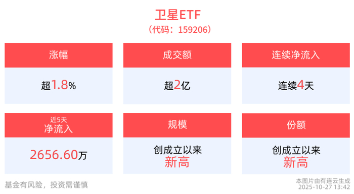 商业航天活跃,产业拐点已至!卫星ETF(159206)连续四天资金净流入,成分股航天智装领涨