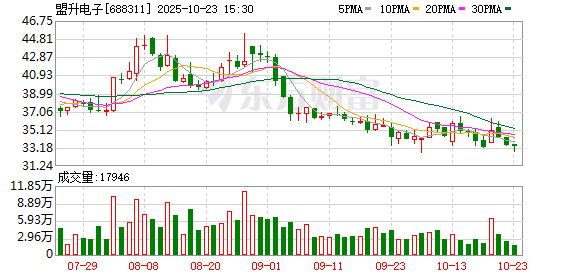 (记者 曾健辉) 2024年1至12月份,盟升电子的营业收入构成为:卫星导航占比55.25%,卫星通信占比41.74%,其他业 务占比3.01%。 每经AI快讯,盟升电子(SH 688311,收盘价:33.36元)10月23日晚间发布公告称,公司第五届第三次 董事会会议于2025年10月23日在公司会议室以现场和通讯结合的方式召开。会议审议了《关于向2025年 限制性股票激励计划激励对象预留授予限制性股票的议案》等文件。 每经头条(nbdtoutiao)——四次登上央视,知名大佬"消失"5年,我们在水果仓库找到了他!从月薪 5000到千亿市值公司联席总裁,他45岁再创业 截至发稿,盟升电子市值为56亿元。 ...