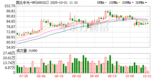 10月21日,奥比中光盘中上涨2.01%,截至13:16,报83.86元/股,成交3.85亿元,换手率1.59%,总市值 336.36亿元。 截至6月30日,奥比中光股东户数2.00万,较上期增加1.15%;人均流通股12885股,较上期减少0.71%。 2025年1月-6月,奥比中光实现营业收入4.35亿元,同比增长104.14%;归母净利润6019.01万元,同比增 长212.77%。 资金流向方面,主力资金净流出329.43万元,特大单买入1310.94万元,占比3.40%,卖出4209.10万元, 占比10.92%;大单买入1.16亿元,占比30.10%,卖出9028.32万元,占比23.43%。 奥比中光今年以来股价涨80.34%,近5个交易日涨3.92%,近20日跌5.23%,近60日涨15.83%。 今年以来奥比中光已经1次登上龙虎榜,最近一次登上龙虎榜为2月19日,当日龙虎榜净买入-4736.28万 元;买入总计1.87亿元 ,占总成交额比10.61%;卖出总计2.34亿元 ,占总成交额比13.30%。 资料显示,奥比中光科技集团股份有限公司位于广东省深圳市南山区西丽街道松坪山社区高新北一道8 ...