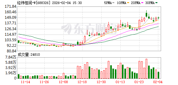 2月3日,经纬恒润涨5.26%,成交额4.93亿元。两融数据显示,当日经纬恒润获融资买入额3538.58万 元,融资偿还3990.78万元,融资净买入-452.20万元。截至2月3日,经纬恒润融资融券余额合计3.45亿 元。 截至9月30日,经纬恒润股东户数6719.00,较上期减少6.09%;人均流通股13400股,较上期增加 6.49%。2025年1月-9月,经纬恒润实现营业收入44.64亿元,同比增长25.88%;归母净利润-7504.60万 元,同比增长81.70%。 融资方面,经纬恒润当日融资买入3538.58万元。当前融资余额3.43亿元,占流通市值的2.07%,融资余 额超过近一年90%分位水平,处于高位。 机构持仓方面,截止2025年9月30日,经纬恒润十大流通股东中,长城久嘉创新成长混合A(004666) 退出十大流通股东之列。 融券方面,经纬恒润2月3日融券偿还500.00股,融券卖出1047.00股,按当日收盘价计算,卖出金额 15.56万元;融券余量1.03万股,融券余额153.22万元,超过近一年90%分位水平,处于高位。 资料显示,北京经纬恒润科技股份有限公司位于北京市朝阳区酒仙桥 ...
