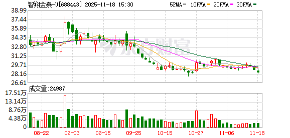 Core Points - The stock of Zhixiang Jintai (688443.SH) closed at 28.82 yuan, with a decline of 2.17%, currently in a state of breaking issue [1] - Zhixiang Jintai was listed on the Shanghai Stock Exchange's Sci-Tech Innovation Board on June 20, 2023, with an initial public offering (IPO) of 91.68 million shares at a price of 37.88 yuan per share [1] - The total amount raised from the IPO was 347.28 million yuan, with a net amount of 329.14 million yuan after deducting issuance costs, which was 68.86 million yuan less than the originally planned amount of 398 million yuan [1] - The company has reported losses for four consecutive years and three quarters, with net profits attributable to shareholders of -322 million yuan in 2021, -576 million yuan in 2022, -801 million yuan in 2023, and -797 million yuan in 2024 [2] - In the first three quarters of 2025, Zhixiang Jintai achieved revenue of 208 million yuan, a year-on-year increase of 1,562.05%, but still reported a net loss of -333 million yuan [2] Financial Summary - The total issuance costs for the IPO amounted to 18.14 million yuan, with underwriting fees of 16.50 million yuan [1] - The company’s cash flow from operating activities was -261 million yuan in the first three quarters of 2025 [2] - The company plans to use the raised funds for the construction and expansion of an antibody industrialization base, research and development of antibody drugs, and to supplement working capital [1]