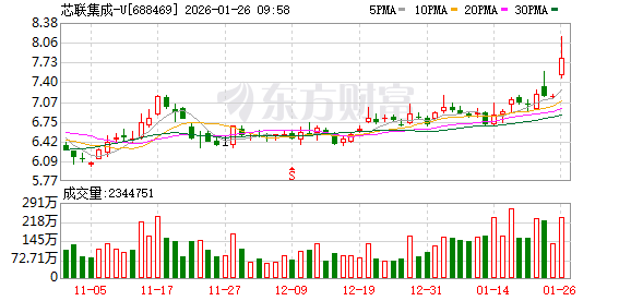 1月22日公司发布2025年业绩预告,预计实现净利润-5.77亿元,同比同比增长40.02%。(数据宝) 两融数据显示,该股最新(1月23日)两融余额为13.11亿元,其中,融资余额为12.98亿元,近10日增加 2148.41万元,环比增长1.68%。 公司发布的三季报数据显示,前三季度公司共实现营业收入54.22亿元,同比增长19.23%,实现净利 润-4.63亿元,同比增长32.32%,基本每股收益为-0.0700元。 芯联集成-U股价创出历史新高,截至9:32,该股上涨8.51%,股价报7.78元,成交量3987.13万股,成交 金额3.04亿元,换手率0.90%,该股最新A股总市值达652.17亿元,该股A股流通市值344.64亿元。 证券时报·数据宝统计显示,芯联集成-U所属的电子行业,目前整体涨幅为0.21%,行业内,目前股价上 涨的有212只,涨幅居前的有芯原股份、富满微、康希通信等,涨幅分别为9.68%、9.48%、8.64%。股 价下跌的有270只,跌幅居前的有至纯科技、珂玛科技、信维通信等,跌幅分别为9.96%、6.21%、 5.17%。 (文章来源:证券时报网) ...