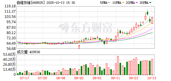 佰维存储10月13日大宗交易平台出现一笔成交,成交量8.69万股,成交金额893.75万元,大宗交易成交 价为102.83元。该笔交易的买方营业部为中信证券股份有限公司总部(非营业场所),卖方营业部为机构 专用。 进一步统计,近3个月内该股累计发生6笔大宗交易,合计成交金额为1.01亿元。 证券时报·数据宝统计显示,佰维存储今日收盘价为102.83元,上涨6.56%,日换手率为11.92%,成交额 为41.83亿元,全天主力资金净流入2911.69万元,近5日该股累计上涨14.10%,近5日资金合计净流出 4.64亿元。 (文章来源:证券时报网) 两融数据显示,该股最新融资余额为17.49亿元,近5日减少2.17亿元,降幅为11.05%。(数据宝) 10月13日佰维存储大宗交易一览 | 成交量 | 成交金额 | 成交价格 | 相对当日收盘折溢 | 买方营业部 | 卖方营 | | --- | --- | --- | --- | --- | --- | | (万股) | (万元) | (元) | 价(%) | | 业部 | | 8.69 | 893.75 | 102.83 | 0.00 | 中信证券股份有限公司总 ...