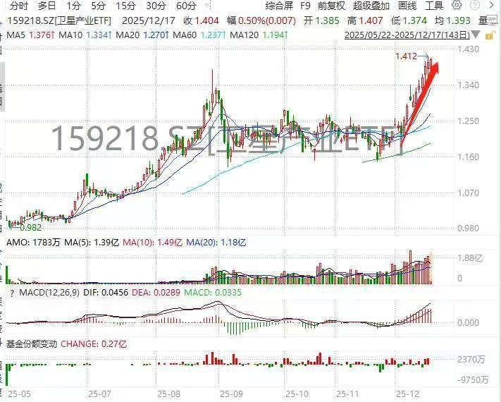 风险提示:基金有风险,投资需谨慎。 分析指出,卫星板块核心驱动力来自一系列高度确定的里程碑事件:本月底海南文昌将举行高规格商业 航天大会,预计有重磅签约发布;2026年1月,具有划时代意义的长征十二号B商业可复用火箭将首 飞;同时,2026年春晚已设海南文昌分会场,将带来全民级曝光。此外,电科蓝天(宇航电源核心供应 商)IPO过会,产业链"硬科技"资产价值获认证。在密集的事件催化下,板块景气度持续提升。 12月17日,卫星产业开盘上攻。截至9时31分,卫星产业ETF(159218)放量涨0.43%,盘中冲击六连升再 创历史新高;前几大权重股方面,航天电子涨0.80%,中科星图涨1.21%,中国卫通跌0.66%。 ...