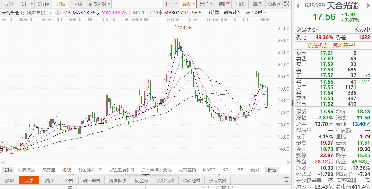 A股异动 | 天合光能跌近8%,预计2025年净亏损65亿元-75亿元