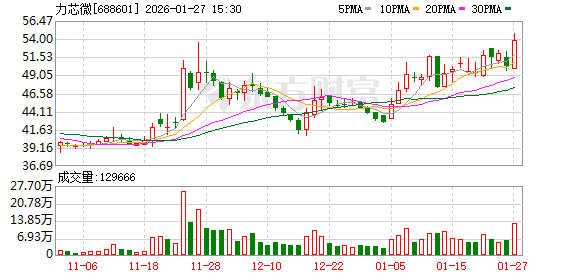 1月29日,力芯微大宗交易成交25.2万股,成交额1204.56万元,占当日总成交额的2.12%,成交价47.8 元,较市场收盘价52.94元折价9.71%。 | 交易日期 | 证券简称 | 证券代码 | | | 成交价(元) 成交金额(万元) 成交量(*) 买入营业部 | | | 类出营业部 | 是否为专场 | | --- | --- | --- | --- | --- | --- | --- | --- | --- | --- | | 2026-01-29 | 力芯微 | 688601 | 47.8 | 334.6 | 7 | Career of the control of the proposition of the proposition of the control of the control of the controlled of the first o | | 有一些 有一个最大量子很少 | 彩 | | 2026-01-29 | 力芯微 | 688601 | 47.8 | 334.6 | 7 | . | 1 | | Ka | | 2026-01-29 | 力芯微 | 688601 | 47 ...