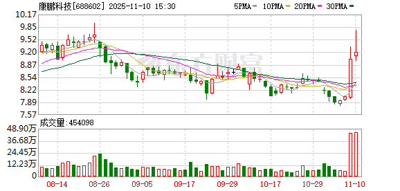 康鹏科技10月30日获融资买入857.23万元,融资余额9661.67万元