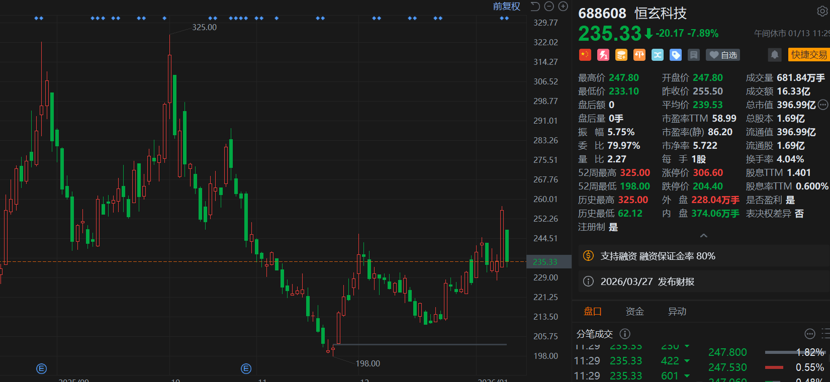 A股异动丨股东拟减持,恒玄科技午间收跌近8%,昨日曾大涨8.5%