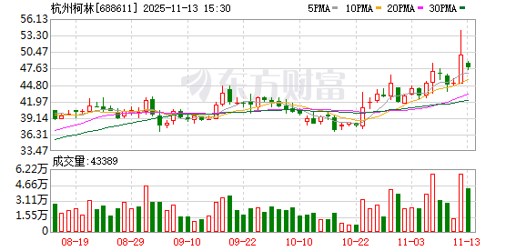 杭州柯林大宗交易成交23.64万股 成交额1128.86万元