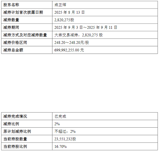 Group 1 - The core point of the article is the significant share reduction by the vice chairman and general manager of Huitai Medical, Cheng Zhenghui, who sold 2% of his shares at a price significantly lower than the market price, with the buyer being Shenzhen Mindray Technology, the controlling shareholder of Huitai Medical [1][2][5] - Cheng Zhenghui reduced his holdings from 25,373,507 shares to 23,551,232 shares, lowering his ownership percentage to 16.70% [2][5] - The share reduction occurred between September 3 and September 11, 2025, at a price of 248.20 yuan per share, totaling nearly 700 million yuan, while the market price was above 300 yuan during that period [2][5][10] Group 2 - Shenzhen Mindray Technology increased its stake in Huitai Medical by acquiring 2,164,739 shares on September 11, 2025, raising its total holdings from 35,253,449 shares to 37,418,188 shares, resulting in a new ownership percentage of 26.54% [5][9] - Huitai Medical has shown impressive growth, with revenue increasing from 479 million yuan in 2020 to 2.066 billion yuan in 2024, and net profit rising from 111 million yuan to 673 million yuan during the same period [9][10] - In the first half of 2025, Huitai Medical reported revenue of 1.214 billion yuan, a year-on-year increase of 21.26%, and net profit of 425 million yuan, up 24.11% [10]